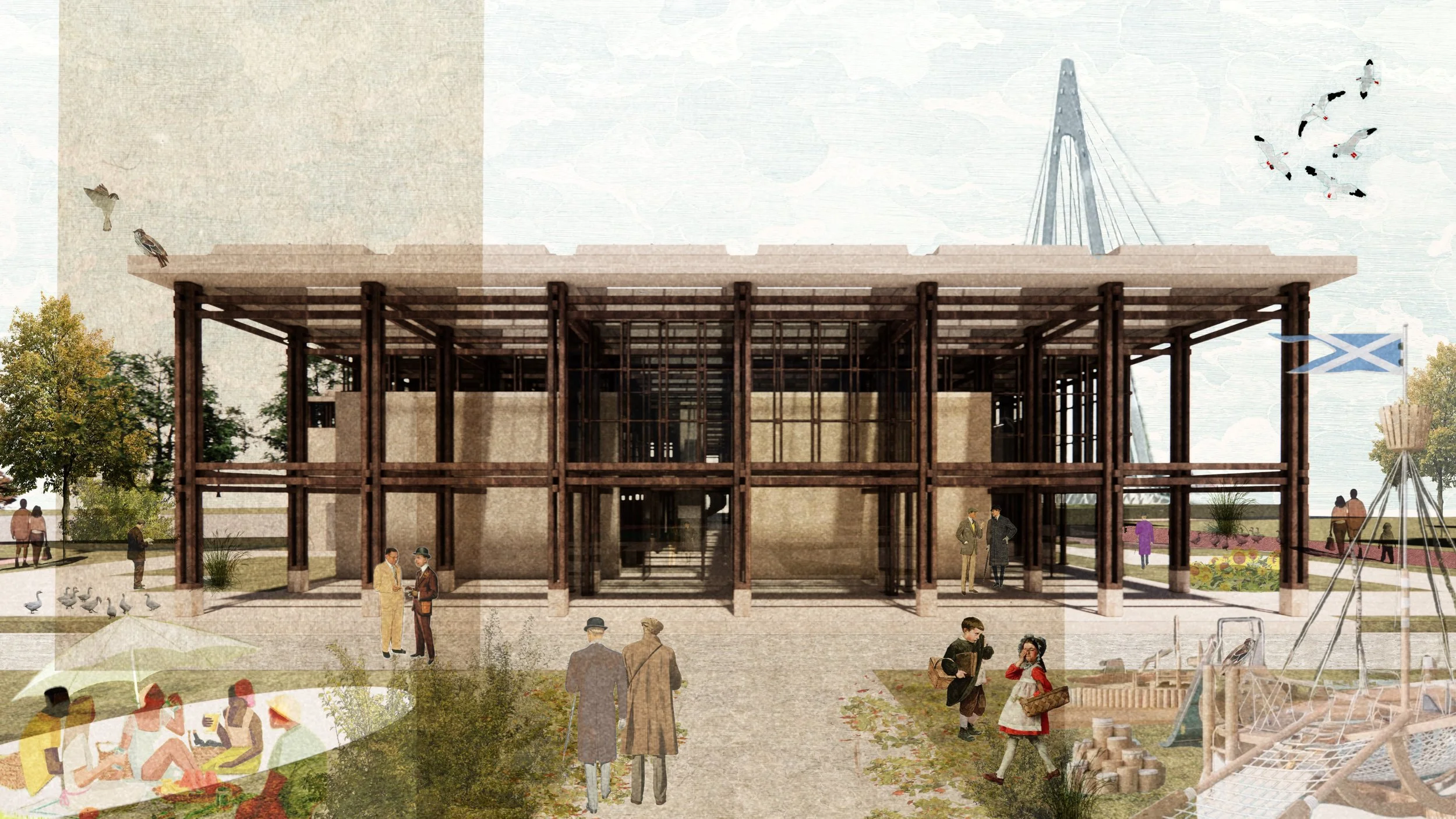 “The ‘Life-Long Learning Retreat,’ in Fort William’s town centre, blends industry and heritage through a mixed-use building focused on wool craft. This project prioritises sustainable material choices and environmental impact, while celebrating wool’s historical significance for the Scottish Highlands through user experience.
