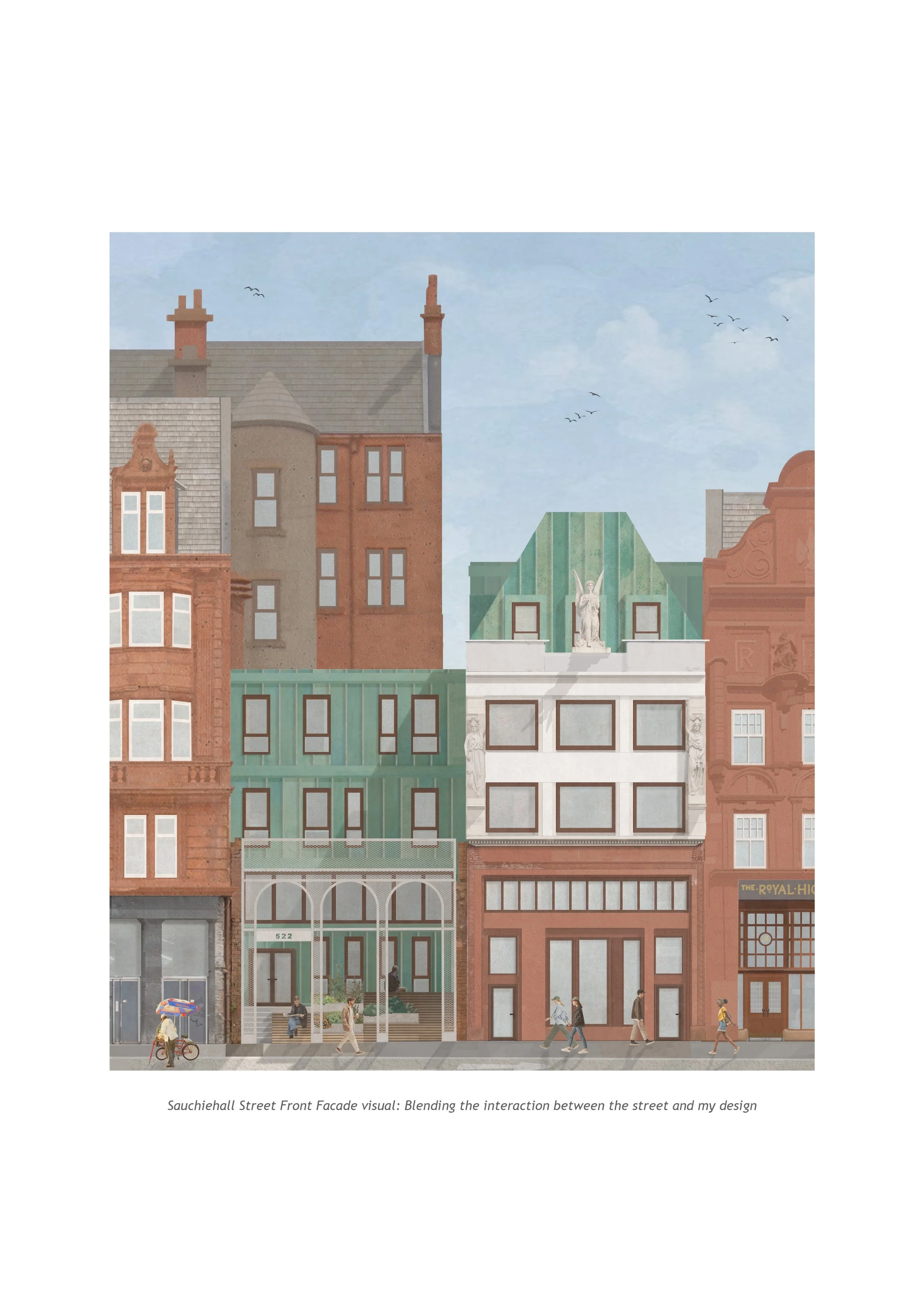 Glasgow is an interesting urban framework on many levels: The patchwork created by the gridded system of city blocks straddles its development pre and post-industrial revolution when trade moved from the Clyde side city centre unloading of small commodities by hand to the larger containerised processes in out of town locations that we are familiar with today. As a result of the stop-over durations of the sailors from trading vessels, a rich and varied cultural identity developed in the city and as we have seen, this had an impact both architecturally and in terms of the detail and syntax of its urban tissue. The opportunity to preserve key elements of design and history through a concept developed by The Glasgow Building Preservation Trust (GBPT) resonated with me. On one hand, Glasgow must embrace urban renewal and on the other it must maintain its identity and key elements of its past for posterity and its future generations.”