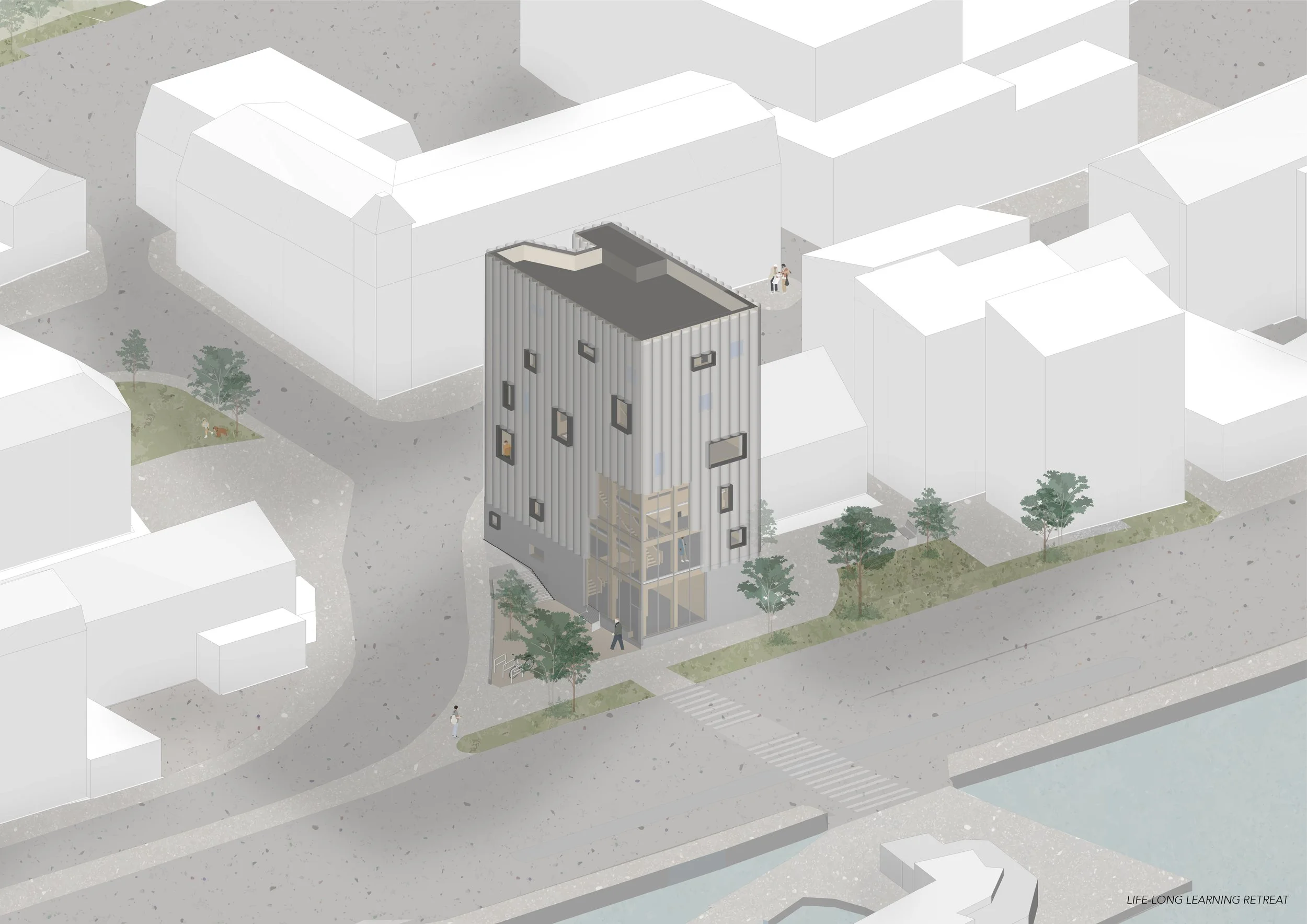 “This thesis challenges conventional architectural responses to death through the lens of Porto, Portugal. Despite Porto experiencing a shift in societal attitudes towards death - with over 57% of urban residents now choosing cremation over traditional burial, and the recent legalisation of euthanasia - its architecture of death remains unchanged. Cemeteries are walled off at the city’s edge, distancing death from daily life. This thesis argues for a renewed architectural approach - one that brings death into the urban realm, creating spaces for reflection, farewell, and remembrance. In doing so, architecture can foster a healthier relationship with death and its inevitable presence.”