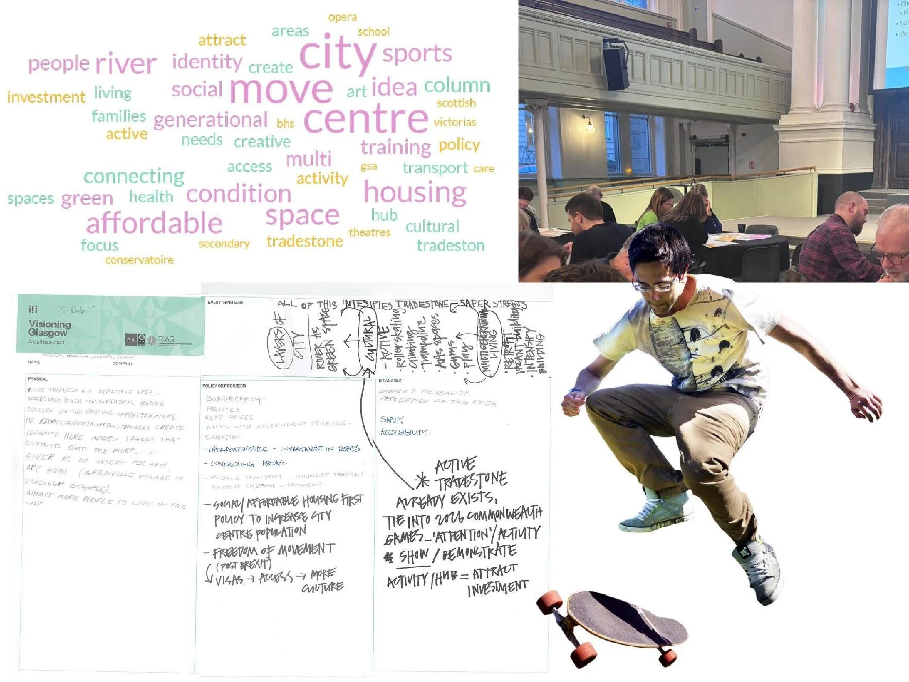 Discussion centred on a collective ambition to transform Glasgow's city centre - particularly Tradeston - into a vibrant, creative, multi‑generational district.